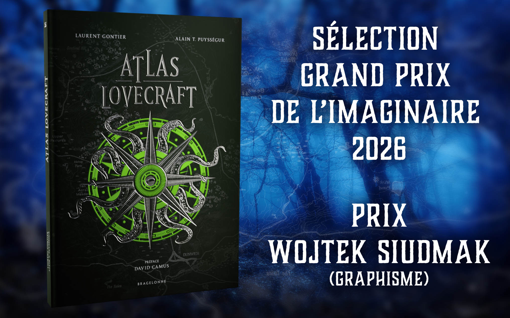 Création de la couverture pour l’Atlas Lovecraft, sélectionnée pour le Grand Prix de l’Imaginaire 2026, Prix Siudmak (graphisme).